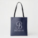 Navy Blue Personalized Script Monogram and Name Tote Bag