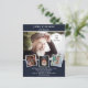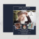 Create your own unique photo collage. Use four, 4 of your favorite photos. Personalize and add a name and party details. Dark blue background, white text.