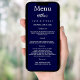 Birthday party menu card. Personalize and add a name, age, date and the menu. A navy blue background. White colored letters.