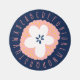 Unique education alphabet ABC typography with boho abstract flower design for your children toddlers in round navy blue, pink and yellow color rug. Cute way to decorate nursery room for your little one. funny and sweet mood.