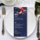 Navy blue pink blue flowers menu template card.