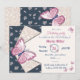 navy blue pink butterflies floral birthday party invitation