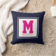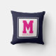 Navy Blue PINK DOTS Preppy Monogram NAME Custom Throw Pillow