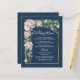 Features a spray of silver dollar and seeded eucalyptus over a navy blue watercolor wash background with a gold border. Design also features elegant floral elements of roses and peonies in dusty rose or blush pink for a unique look. NOTE: This product is best sized at 4.5" x 5.6" or 8.5" x 11." It is not recommended to purchase this item in the size 5.5" x 8.5" because said size is long and skinny. This will distort the printed gold border and other elements.
