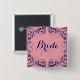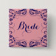 Bride button. Elegant navy blue vintage floral lace swirl frame over pastel-pink background you can change on the website. If you need any help customizing any of my designs, contact ArtOnWear designer. Free text formatting with live help available by request.