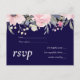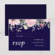 Navy Blue Pink Floral Modern Wedding Budget Invitation Postcard