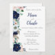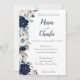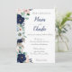 Navy Blue & Pink Floral Wedding Invitation