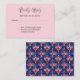 Back: Navy blue background decorated with a retro style pink floral pattern