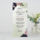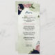 beautiful pink and navy blue flowers greenery botanical wedding menu.