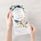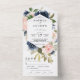 Navy Blue & Pink Flowers Wedding All In One Invitation