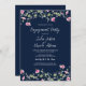 Navy Blue Pink Hibiscus Bloom Rehearsal Dinner Invitation