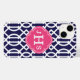 Navy Blue & Pink Modern Trellis Monogram Case-Mate iPhone Case