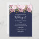 Navy Blue Pink Rose Floral Wedding Invite