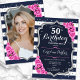 Navy Blue Pink Silver Photo 50th Birthday Invitation