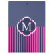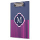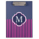 Navy Blue Pink Stripes Monogram Clipboard