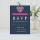 Navy Blue Pink Wedding RSVP Card with Love