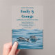 This elegant navy wedding invitation is perfect for a coastal wedding. The design features a beautiful under-the-sea view of playful dolphins with sleek navy blue calligraphy on a clear acrylic background.