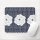 Navy Blue Polka Dot & Big White Flowers Mouse Pad