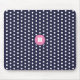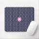 Polka dot monogram mouse pad. Round monogram in pink and white with a navy blue and white polka dot background.