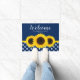 Country themed welcome doormat, featuring yellow sunflowers on a navy blue background. Easily personalize with your family name and year.