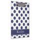 A repeating pattern of navy blue dots with a white background. Personalize the matching ribbon with your name or custom message. Adjust the size of the dots by clicking "Customize It"!