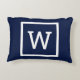 Navy Blue Preppy Graphic Border Monogram Accent Pillow