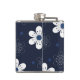 Pretty navy blue and white modern floral pattern on monogrammed hip flask.