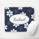 Pretty navy blue and white modern floral pattern on personalized mousepad.