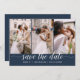 QR Code - Modern and Elegant Landscape Horizontal Three (3) Photo Save the Date Wedding with hand lettered script typography. The save the date invitation magnet includes script typography and chic and simple design that you can add your customized engagement photograph picture to.