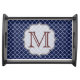 Navy Blue Quarterfoil Lattice Quarter Foil Monogram Initial Personalized Custom Fabric Pattern Serving Tray