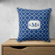 Navy Blue Quatrefoil Monogram Throw Pillow