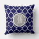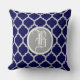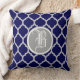 Navy Blue Quatrefoil Pattern Monogram Throw Pillow