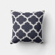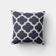Navy Blue Moroccan trellis pillow. Made in the U.S.A. Decorative throw pillows with a geometric quatrefoil pattern in contemporary colors.