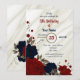 navy blue & red floral birthday party invitation