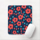 Navy Blue and Red Poppy Floral Print Seamless Pattern mouse pad