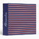 Navy Blue Red Stripe Pattern 3 Ring Binder