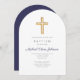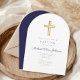 Navy Blue Religious Cross Boy Baptism Arch Invitation