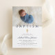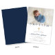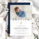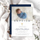 Navy Blue Religious Cross Boy Baptism Photo Invitation