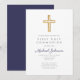 Navy Blue Religious Cross Boy First Communion Invitation