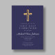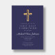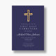 Plain white envelopes are included with paper invitations and will come to fit the invitation size you select. If you don’t need the envelopes, you may choose to not receive them by selecting the dropdown below "Envelopes" and choosing "None." If you’d like to have a design on your envelopes, you can browse all of these available envelopes to find the design that complements your Navy Blue Religious Cross Boy First Communion Invitation.