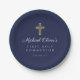 Navy Blue Religious Cross Boy First Communion Paper Plates.