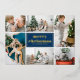 Navy Blue Retro Merry Christmas Photo Collage Foil Holiday Card