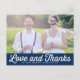 Give your thank-you cards a fun, nostalgic touch with this custom horizontal photo wedding thank you card. Designed with bold retro-inspired "love and thanks" typography over your favorite wedding photo, this card combines vintage charm with modern personalization.