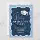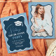 Navy blue retro wavy frame photo graduation invitation