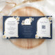 Navy Blue Retro Yellow Daisy All in One Wedding Tri-Fold Invitation