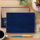 Simple, elegant, modern navy blue and rose gold 5x7 envelope with unique, sophisticated faux gold floral lace, string lights inside and return address. Perfect choice for contemporary chic weddings!
