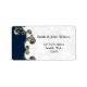 "navy blue" return address label