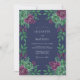 A deep navy blue backdrop sets a moody tone for this design, which features a lush arrangement of watercolor roses in shades of plum and emerald green. Intricate foliage and verdant leaves accent the design, creating a rich and sophisticated botanical look. Ideal for an elegant winter evening, the artwork combines classic floral motifs with a bold, dark palette.
