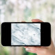 Navy Blue Romantic Brushed Frame with Photo Chic Save the Date Cards. With luxury marble texture back, elegant calligraphy Script font plus slim line serif! Edit yours today with your names, date and photo!