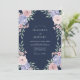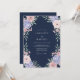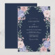 This design features a deep midnight blue background that provides a striking contrast for soft watercolor blossoms. Delicate pink roses and lavender hydrangeas are artfully arranged with sage green foliage to create a romantic and elegant atmosphere. The painterly style offers a timeless and sophisticated aesthetic.